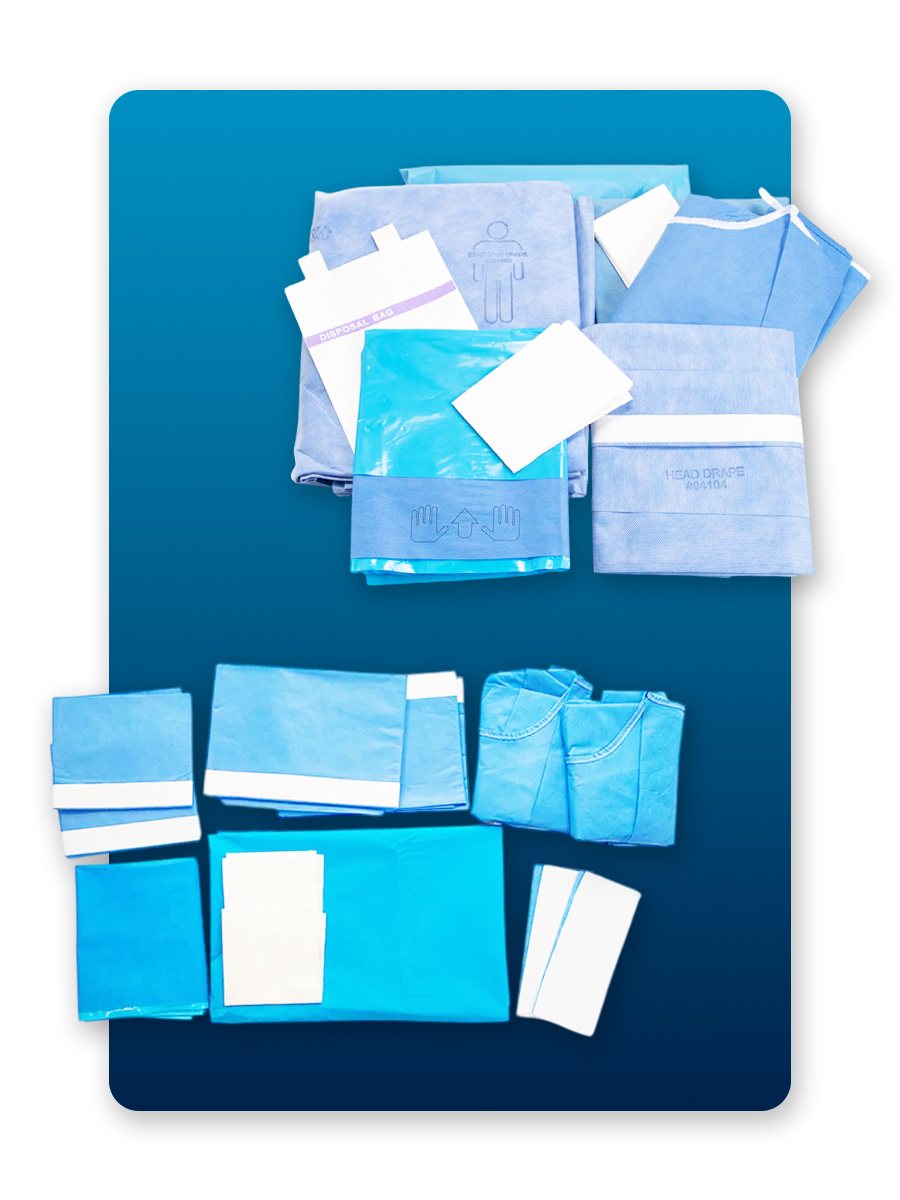 We provide complete solution for Surgical Drapes including Orthopedic Drapes & Kit, Urology Drapes & Kit, Laparoscopy Drapes & Kit, Laparotomy Drapes & Kit, Gynecology Drapes & Kit, Cardiology Drapes & Kit, Endoscopy Drapes & Kit, Surgeon’s Universal Kit, Surgeon’s Gown & Other Hospital Disposables Item.