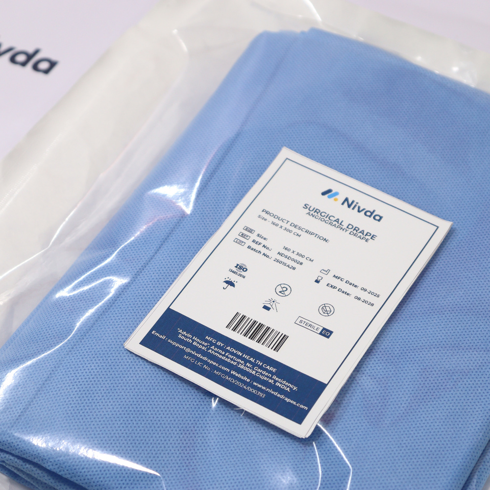 Nivda Drapes Angiography Drapes are engineered to support sterile procedures during diagnostic and interventional angiography. Made from high-quality, fluid-resistant non-woven material, they minimize the risk of contamination and protect both patients and healthcare professionals. Their design allows easy access to the operative site while covering surrounding areas efficiently. Ideal for use in catheterization labs, these drapes ensure workflow efficiency and maintain a hygienic environment throughout the procedure.