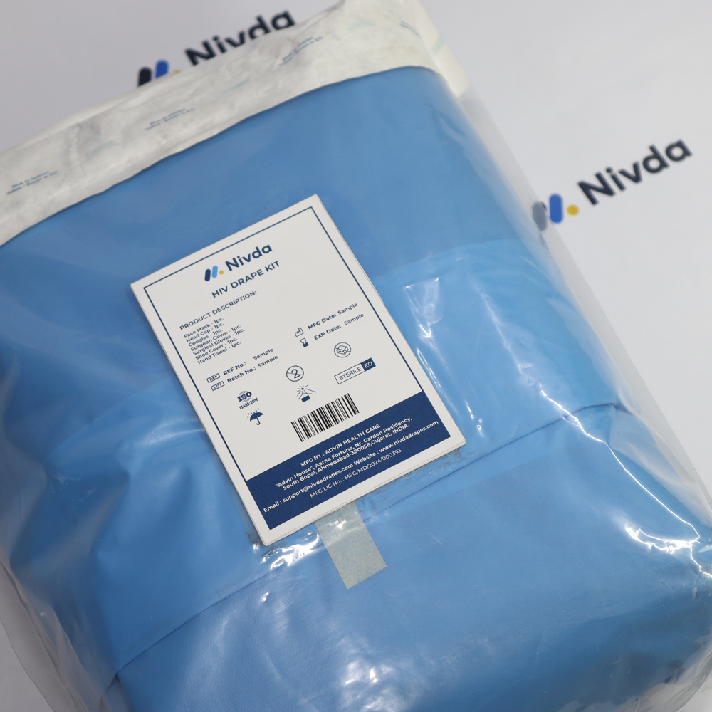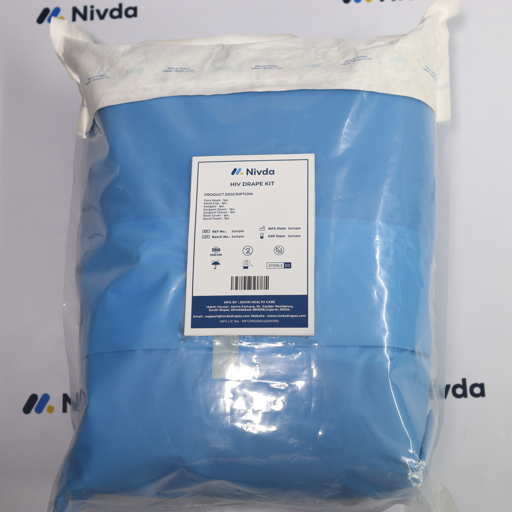 Nivda Drapes HIV Drape Kit is developed to meet the high safety standards required for surgeries involving HIV-positive patients. Made from premium non-woven, fluid-resistant material, the kit provides superior infection control and durability. It ensures full patient coverage while allowing precise access to the operative site, helping to reduce the risk of cross-contamination. Widely used in general surgery, gynecology, orthopedics, and other specialties, this drape kit enhances protection, maintains a sterile environment, and supports the safety of medical staff and patients alike.