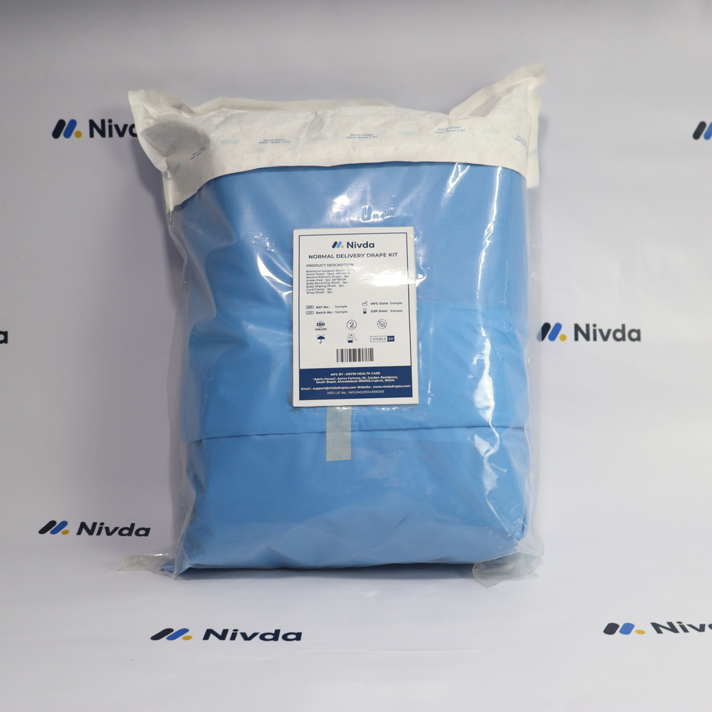 Nivda Drapes Normal Delivery Drape Kit is carefully developed to meet the requirements of routine childbirth procedures. Made from high-quality, non-woven, fluid-repellent material, the kit ensures superior infection prevention and patient safety. Its design allows focused access to the delivery area while providing complete coverage and fluid control for surrounding regions. Widely used in maternity and gynecology departments, this drape kit enhances workflow efficiency, reduces contamination risks, and ensures a sterile environment for safe deliveries.