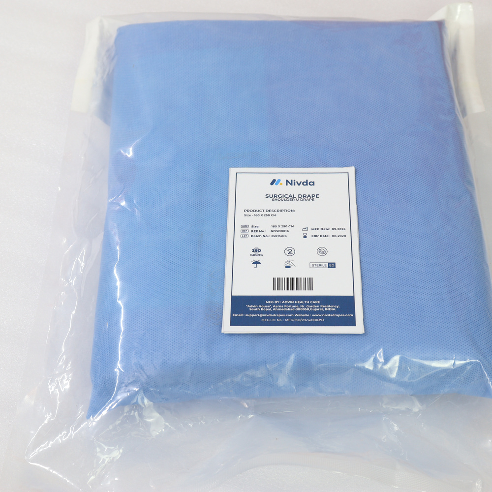 Nivda Drapes Shoulder U Drapes are carefully designed to meet the requirements of orthopedic surgeries involving the shoulder region. Made from high-quality non-woven material, these drapes ensure strength, sterility, and resistance to fluids. The U-shaped design allows surgeons clear and easy access to the operative area while maintaining maximum protection for the surrounding sterile field. Ideal for use in hospitals and orthopedic centers, these drapes enhance infection control and surgical efficiency.